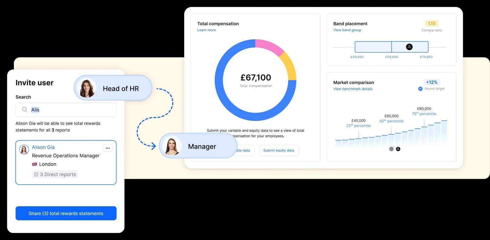 Start managing compensation with confidence with instant access to reliable real-time benchmarks and salary bands, all in one place.